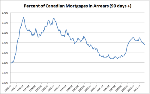 This is simply not a good option for Canadian mortgage holders. Canadian homeowners buy homes with the knowledge that their other assets and future wages could be on the line if their home value is underwater. Even in 2009 when the Canadian economy was in recession and housing prices fell 9 per cent, the percent of Canadian mortgages in arrears rose, but not by much.